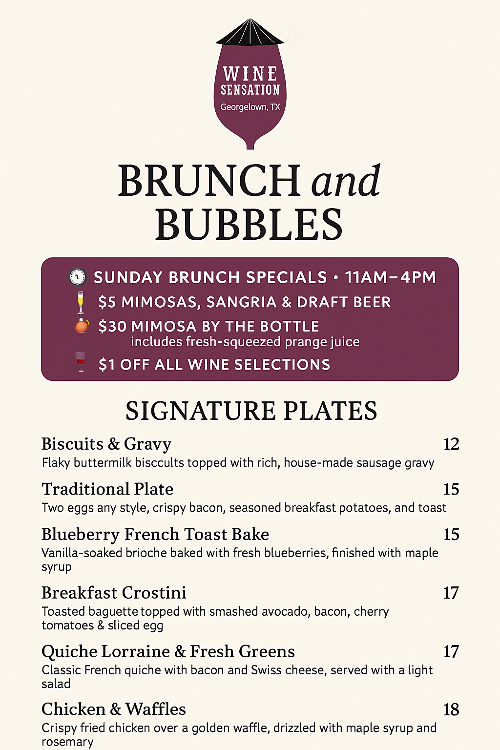 A lover of food and wine, Patrease Rogers decided to step away from her corporate life and expand her passion into creating fun and fabulous wine pairings. Now run by the entire family, Wine Sensation is the local wine bar that serves wine from around the globe, scratch made food with love, with all the local fun and familiarity of Georgetown. Come join us On Cloud Wine!